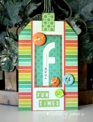 I began with a rectangular journal card that I cut into a tag shape. Then I added some bits of paper, some buttons, twine and mini alpha stickers! The papers are from Echo Park and the alpha stickers are from October Afternoon.